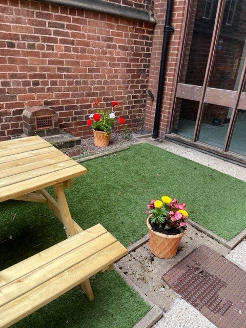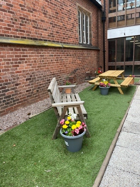 Flowers were kindly donated by staff at Lichfield District Council and Business Hub including In-Form Solutions. They have been potted and placed in our outdoor seating area to bring colour and a natural environment to the space as can be seen in the pictures below. In-Form Solutions have agreed to maintain the garden.
